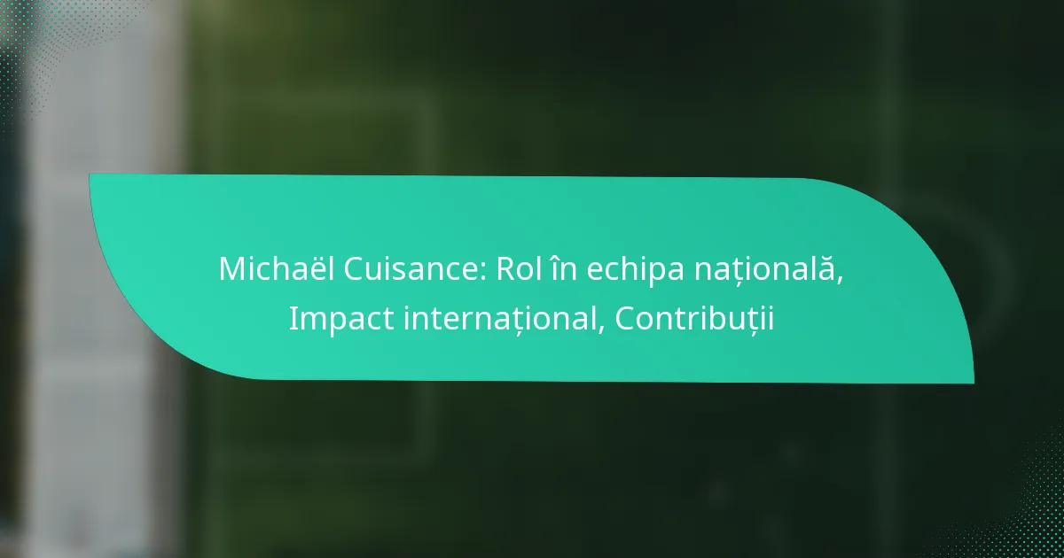Michaël Cuisance a adus contribuții semnificative echipei naționale prin abilitatea sa de a marca, abilitățile de organizare a jocului și leadershipul atât pe teren, cât și în afara acestuia. Impactul său internațional este evident în meciurile cheie în care și-a demonstrat talentul și angajamentul față de succesul echipei.